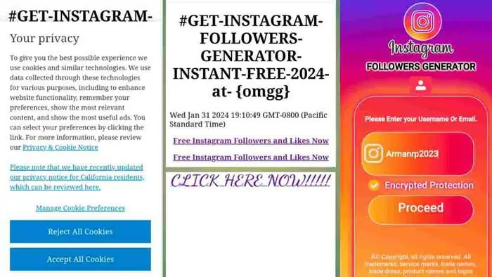 - Select the Followers Option: After clicking Reject All Cookies, two options will appear: Free Instagram Followers and Free Instagram Followers and Likes. You can click on either option.