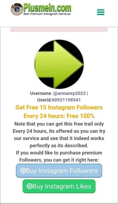 Free Instagram Followers Plusmein website ka use karna kaafi asaan hai. Niche diye gaye download button par click karke shuruaat karein.