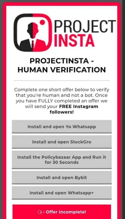 Please note, if you don’t download and use the app, you won’t receive followers. So, by following this process, you can successfully increase your followers using the Project Instagram Free Followers website.